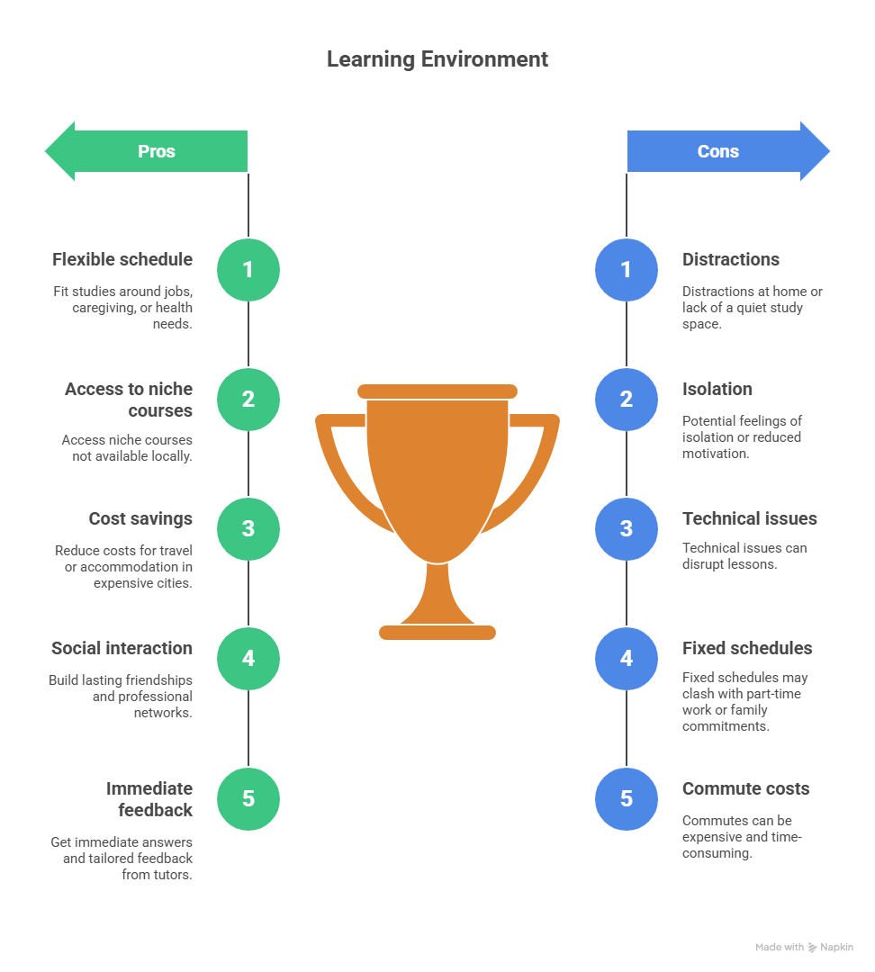 Online courses eliminate commuting, save on accommodation costs, and allow students in remote areas—like parts of the Scottish Highlands or rural Wales—to access top-tier instruction. Learners can pause, rewind, or revisit lessons, giving them control over their own progress.